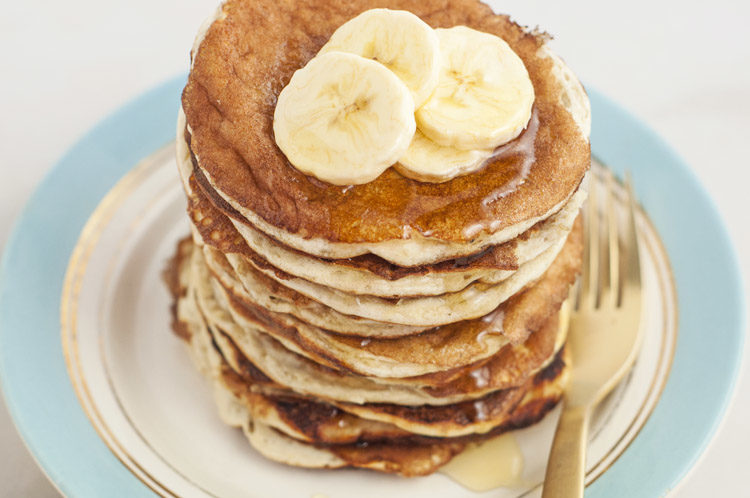 2. Lightly spray a skillet with non-stick spray and heat on medium heat. Pour about 1/4 cup of the batter into the pan. Cook about 3 to 4 minutes, or until pancakes begin to bubble in the center. Carefully flip and cook for another 2 to 3 minutes. Once cooked, remove pancake from the pan and repeat the process until all the batter has been used. Spray the skillet as needed with non-stick spray in-between cooking the pancakes.