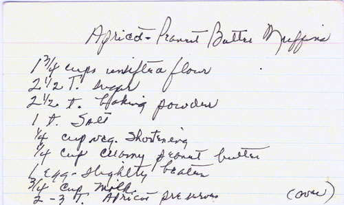 Creamy peanut butter muffins with a dab of apricot preserves baked into each one.