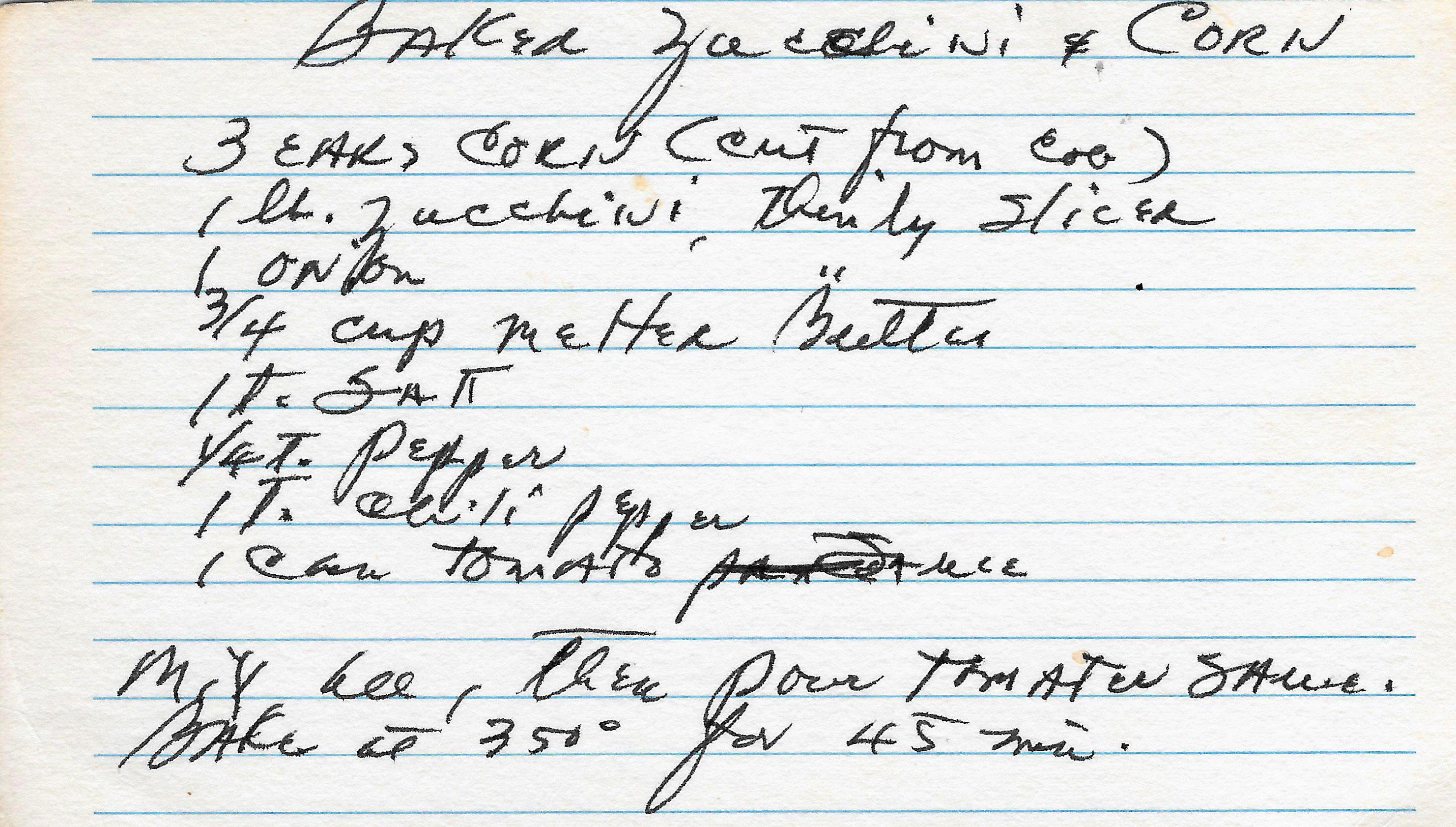 Baked casserole with corn, zucchini, onion, chili pepper and tomato sauce.