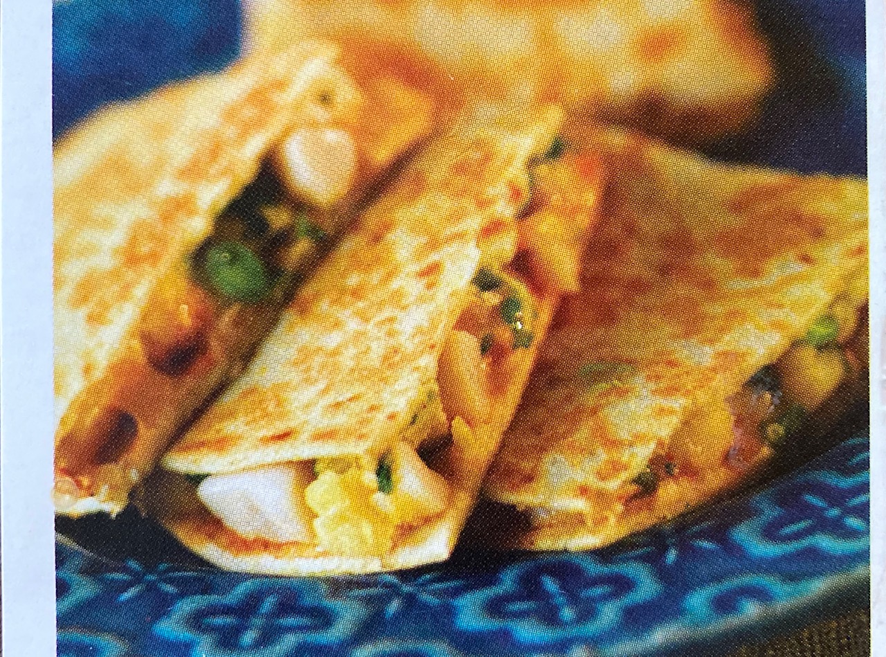 Quesadillas filled with scallops, cream cheese, pineapple and southwest seasonings.