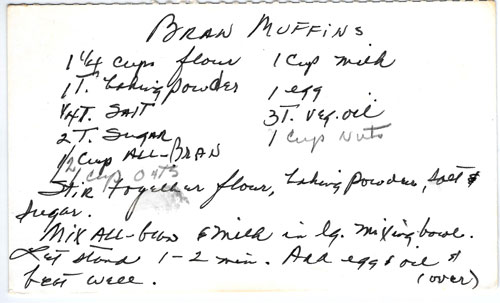Mix All-Bran and oats with milk in a large mixing bowl. Let stand for 1 to 2 minutes. Add egg and oil and beat well.