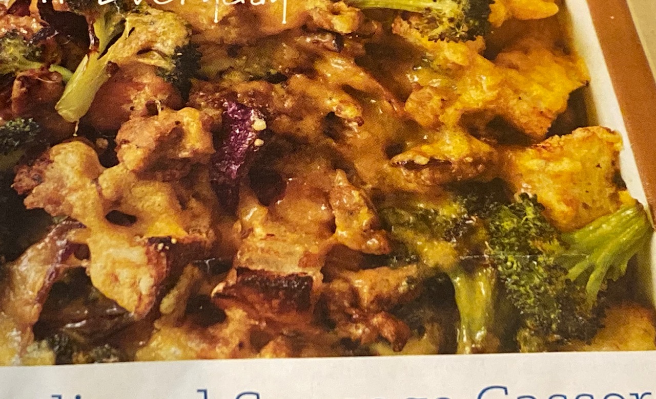 Fabulous go-to meal for brunch or lunch; casserole made with broccoli, your favorite sausage, Italian bread, chicken broth and seasonings.