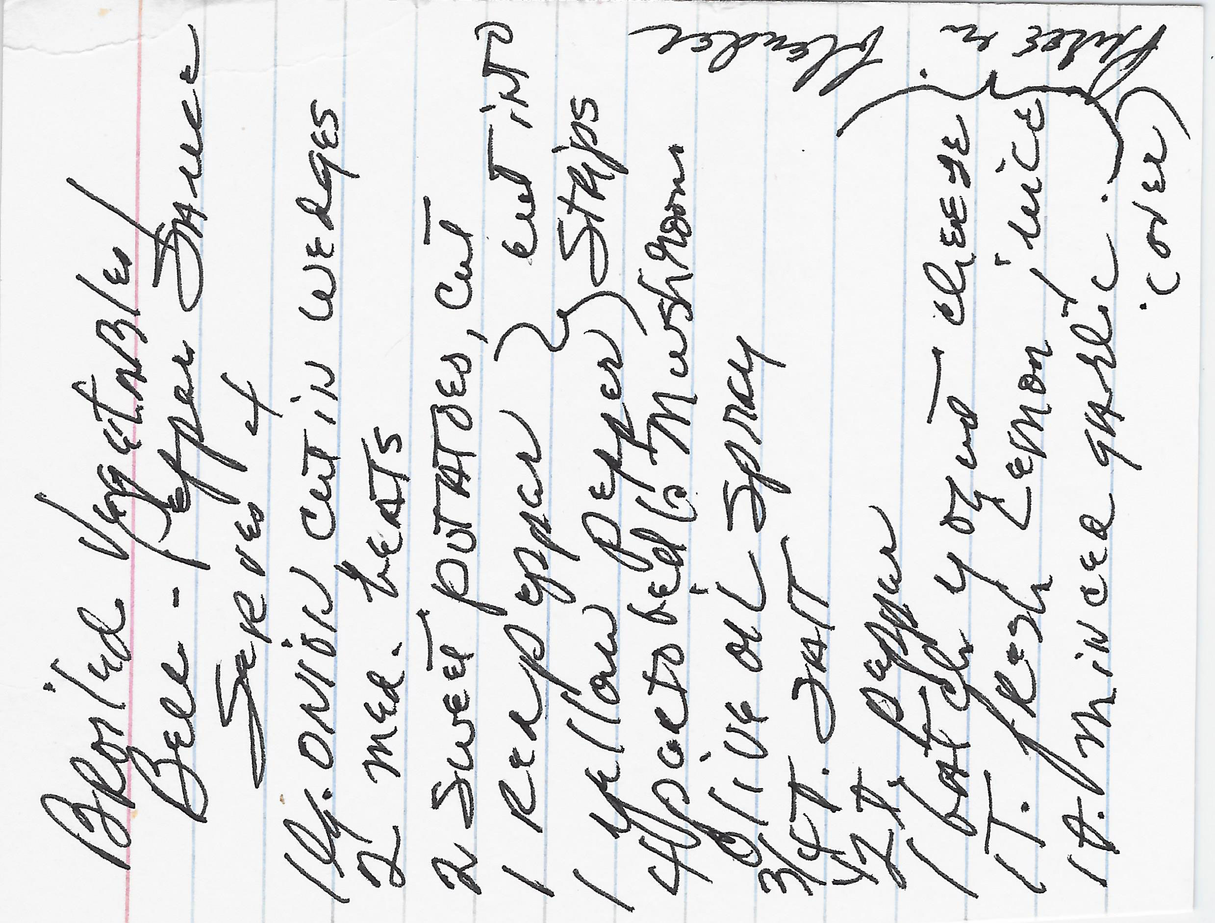 Broiled onion, beets, potatoes and peppers tossed in lemon yogurt sauce.