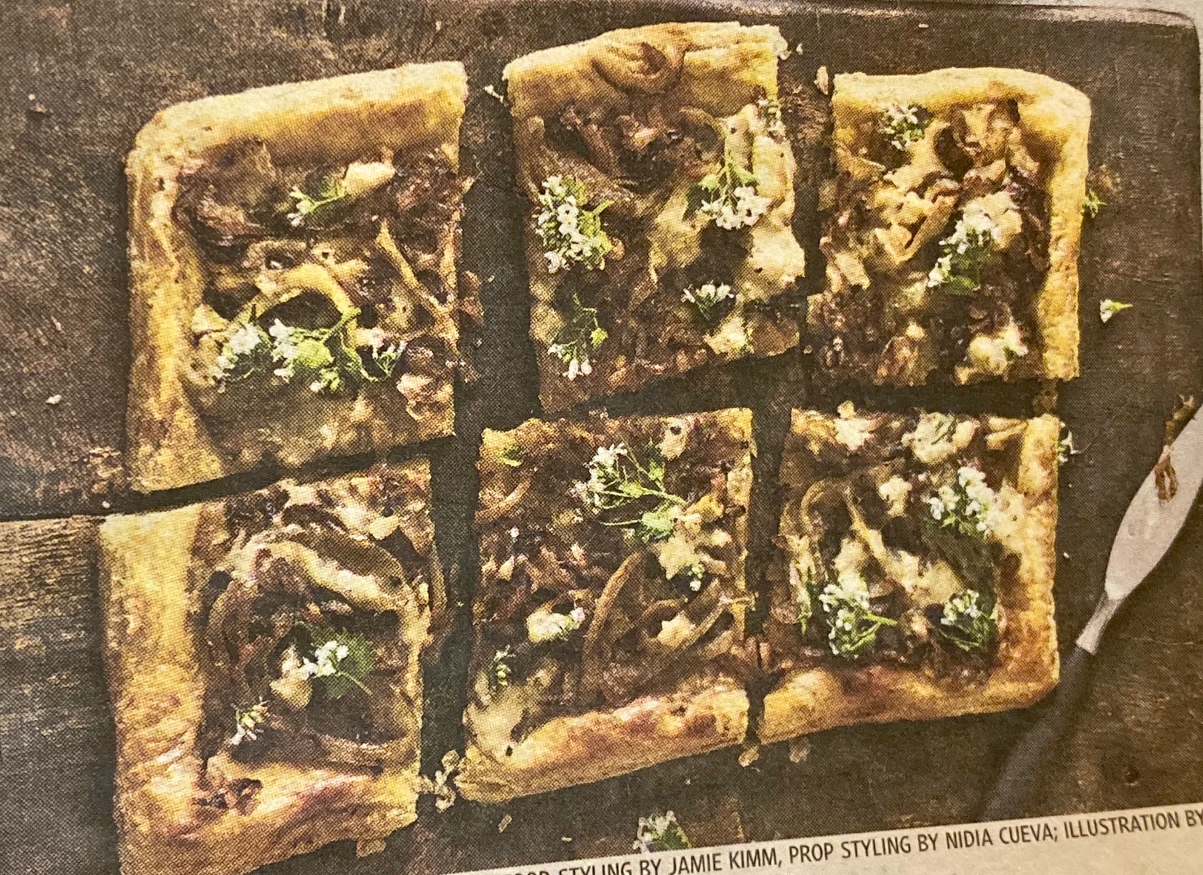 Spoon 3/4 of onion puree evenly over both sheets of pastry, leaving a 1/2-inch border all around. Spread caramelized onions over puree. Bake until topping gently sets and dough is a deep gold at edges, 12 to 15 minutes.