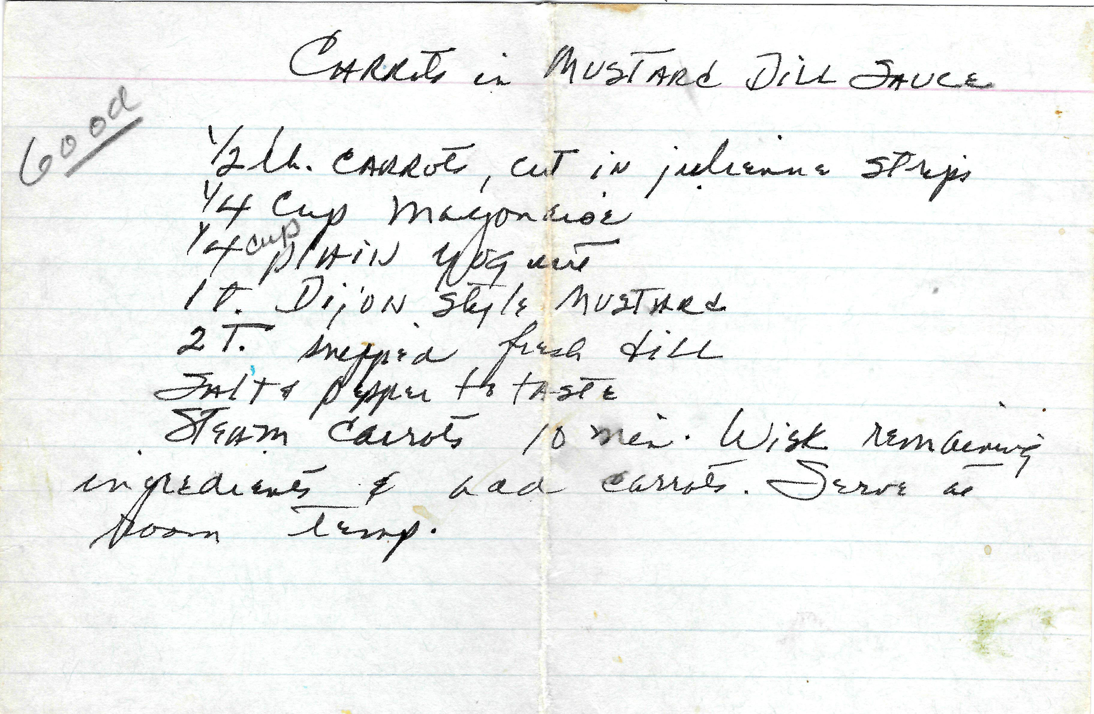Julienned carrots steamed and tossed with creamy Dijon mustard sauce.