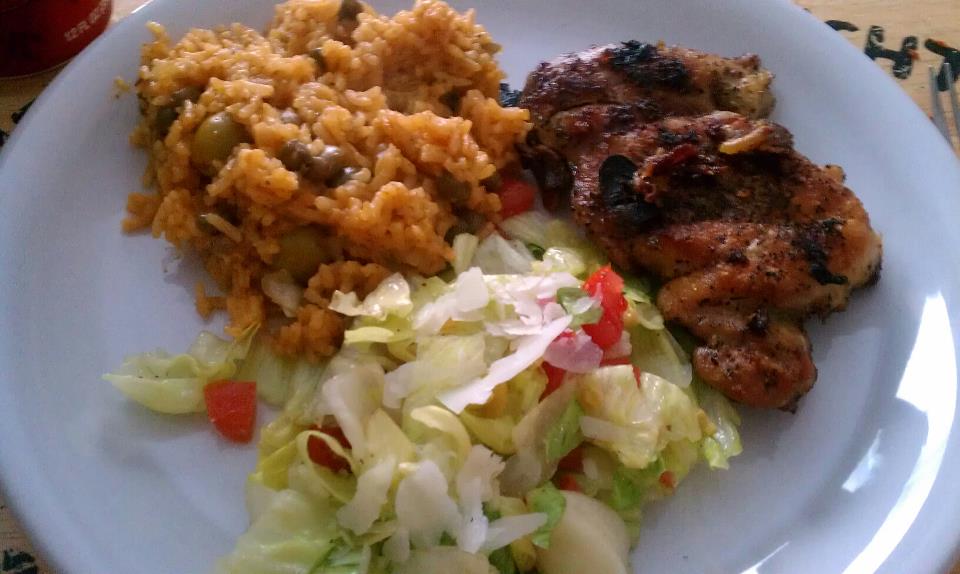 I serve w/ Arroz con Gandules and a wedge salad w/ homemade vinagrette dressing.