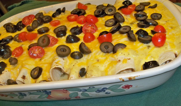 For filling, stir 1/2 cup of the sauce into chicken. Place about 1/4 cup filling atop each tortilla; roll up. Arrange rolls, seam side down, in a lightly greased 12x7.5x2-inch baking dish. Top with remaining sauce. Bake, covered, in a 350 oven about 35 minutes or until heated through.
