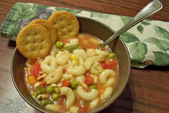 For Chicken Noodle Soup: prepare as above, except, after chicken broth comes to a boil, stir in 1 cup uncooked medium noodles. Return to boiling; reduce heat. Cover and simmer about 8 minutes or until noodles are done and vegetables are crisp-tender. If I am out of egg noodles, I use whatever type noodles I have on hand.