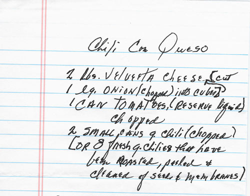 Velveeta, green chilies, onion and tomatoes made into a creamy dip for dipping tostadas.