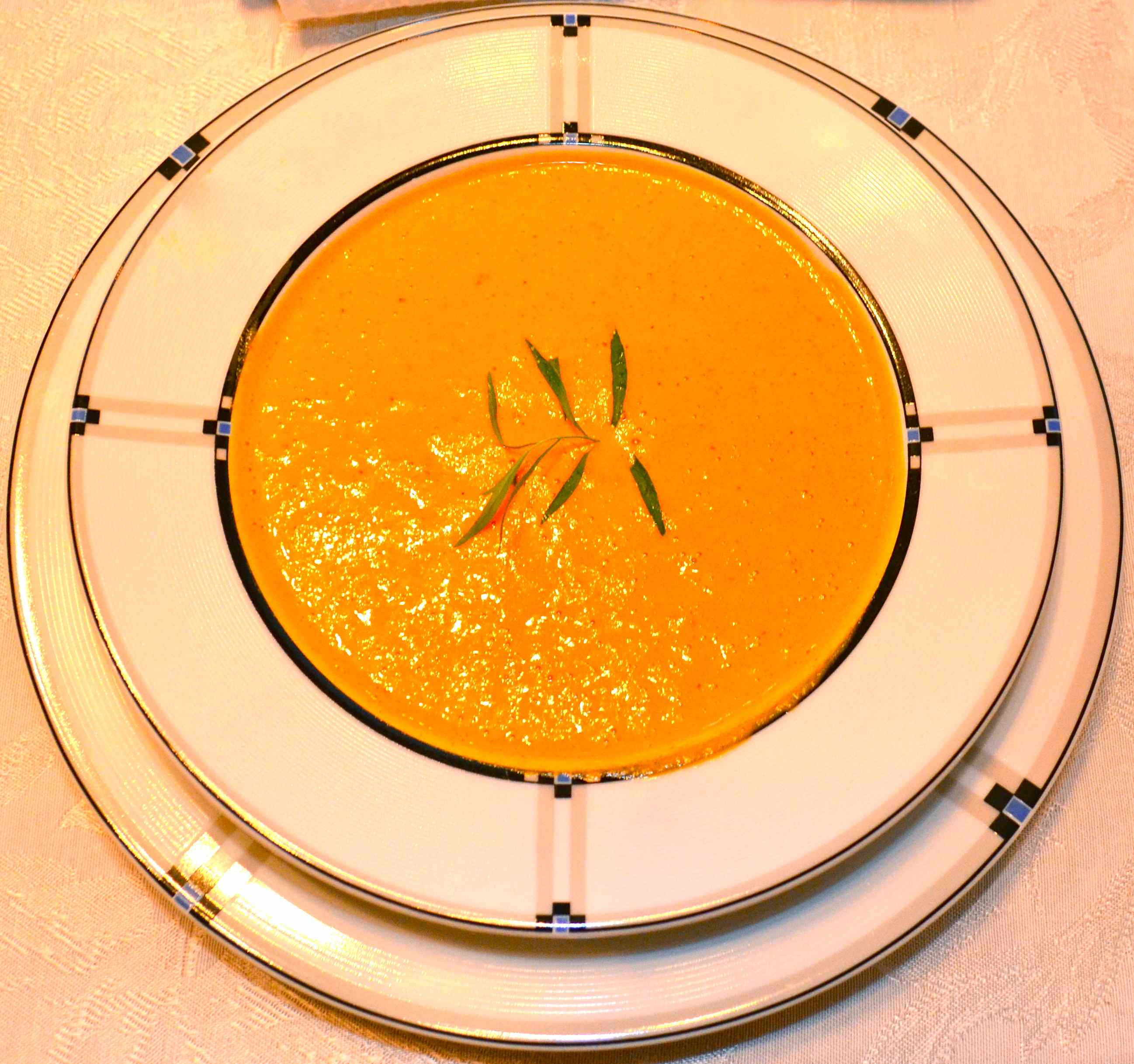 This creamy vegetable soup is nice meal starter for a warm Autumn evening.