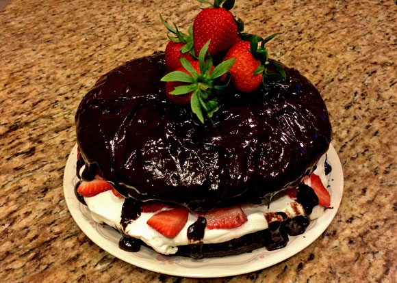 Chocolate Cake with Strawberries and Whipped Cream Filling