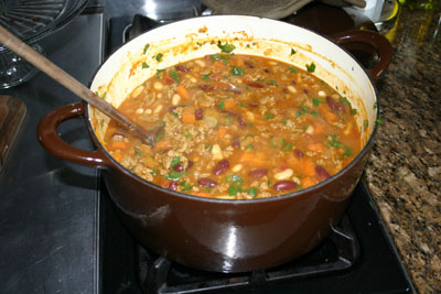 I use turkey burger but you can use ground beef or beef stew meat. I also use green beans. This is a choice. Adds a nice color to the chili. It is great with corn bread or served in a bread bowl. I have also removed the meat to make it vegetarian.