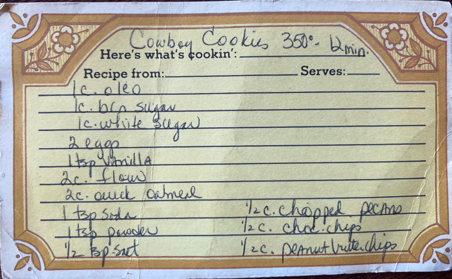 Cookies with oats, pecans, chocolate chips and peanut butter chips.