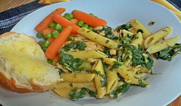 Chili powder & garlic add a hint of warmth to this creamy pasta and chicken dish.