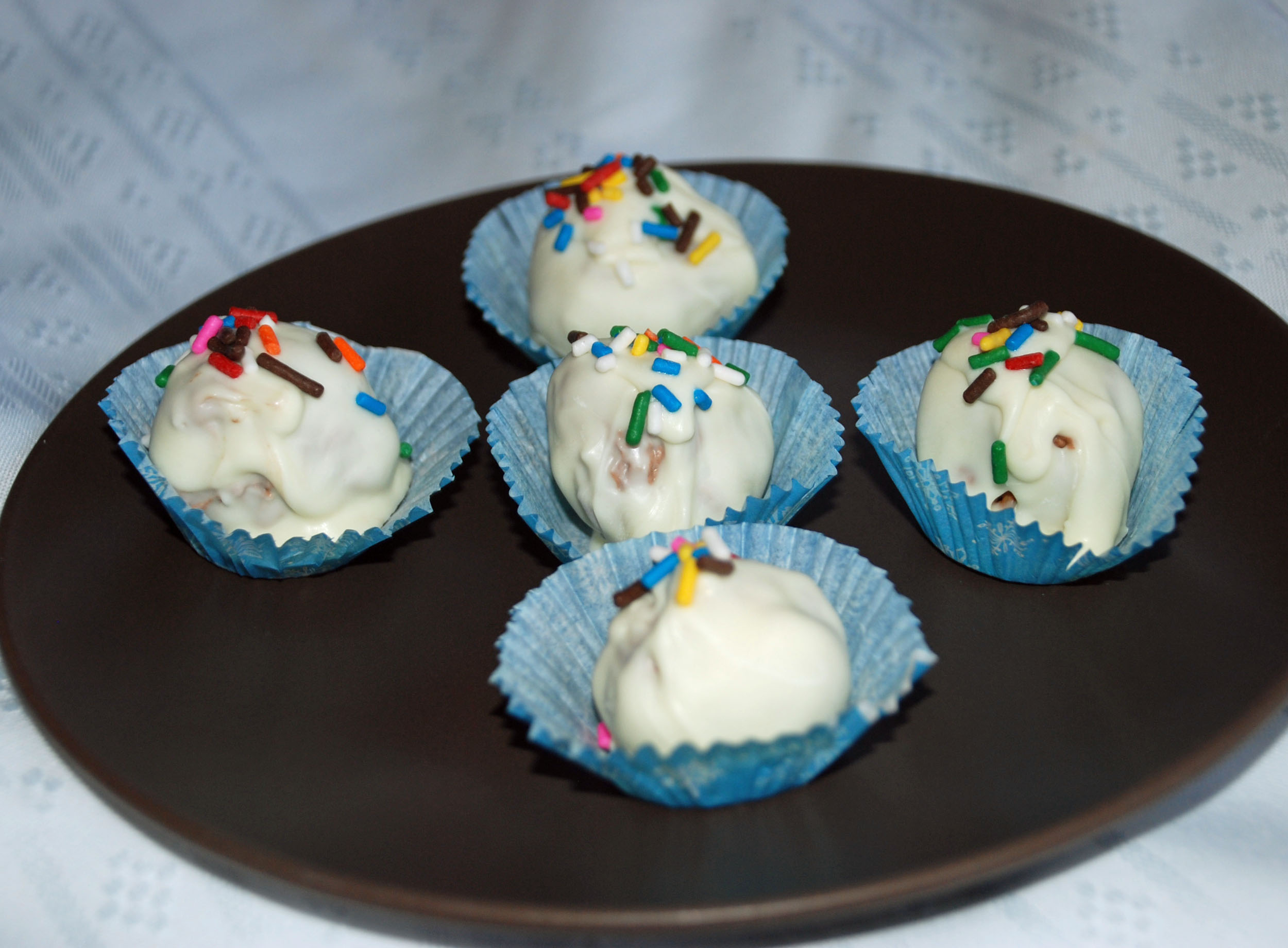 Decorate with sprinkles, if desired. Refrigerate until firm. Place in small candy paper cups to serve.