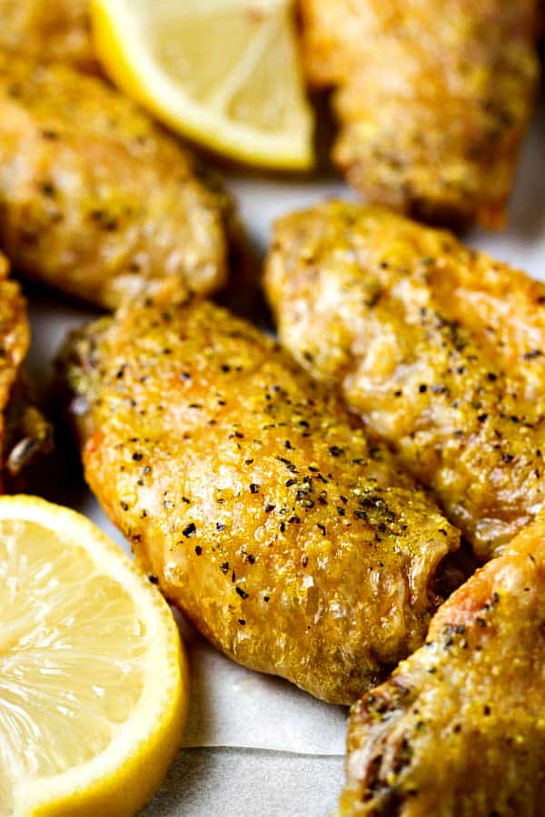 Remove wings from the oven. Mix melted butter and lemon-pepper seasoning and brush liberally onto wings (stir butter mixture as you go to make sure you have plenty of seasoning for each wing).