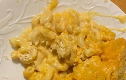 Macaroni and Cheese prepared in a crockpot.
