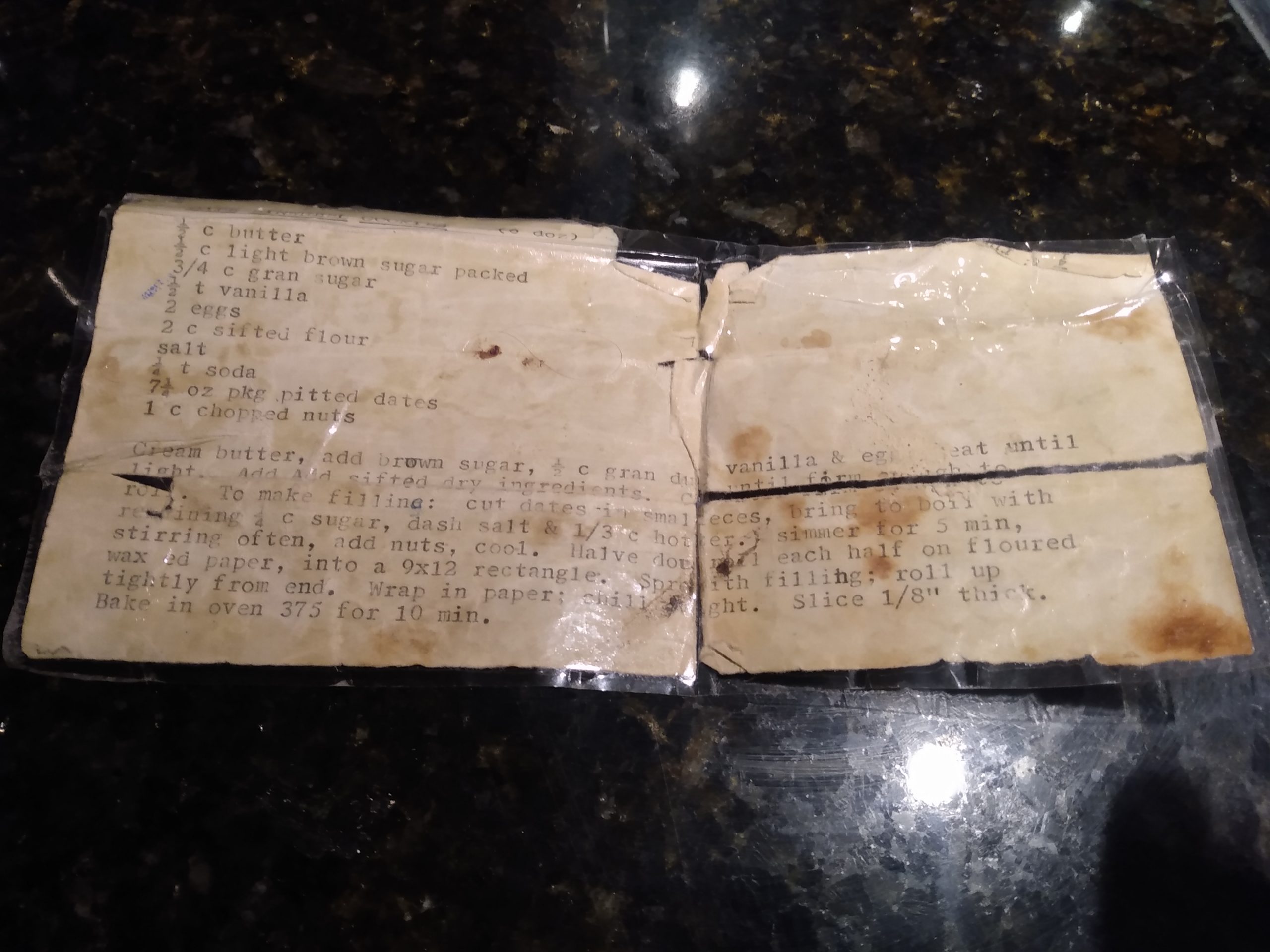 To make filling: cut dates in small pieces, bring to boil with remaining 1/4 c sugar, dash salt & 1/3 c hot water. Simmer for 5min, stirring often, add nuts, cool.