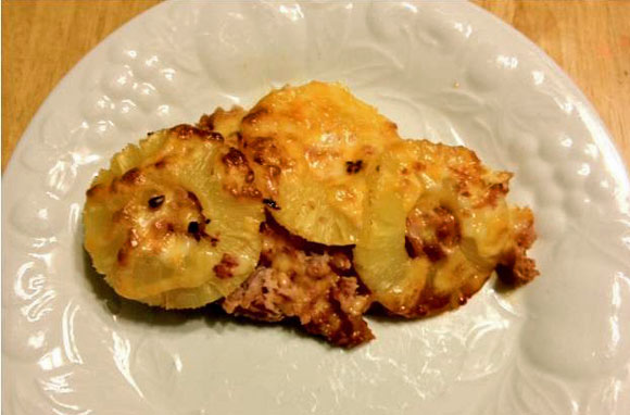 Using the brands suggested above results in a delicious gluten-free main dish for those with Celiacs or Gluten Intolerance. I use a cheese grater to shred the ham.