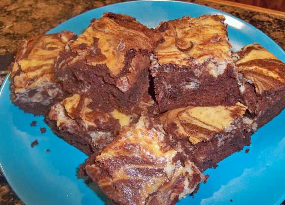 In a small bowl, stir together all of the filling ingredients. Spread over brownie mixture in pan. Spoon remaining batter over cream cheese. (Batter will not entirely cover cream cheese mixture.) Bake for 30-35 minutes or until brownie begins to pull away from sides of pan.