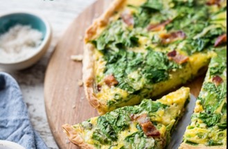 Quiche with bacon, cheese and onion.