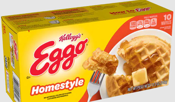 Remove one whole frozen waffle from packaging and put into a toaster. Ensure device is plugged in and activate the toaster. When the waffle pops up, place it onto a plate. Optionally add syrup and butter. The plate is not entirely necessary, but be careful because sometimes the waffle is too hot to handle. Sometimes it is necessary to keep an eye on the toaster in case the waffle stays in too long. Depending on the settings of your toaster, it may not get toasted enough. If this occurs, activate the toaster again for greater heat and toastiness.