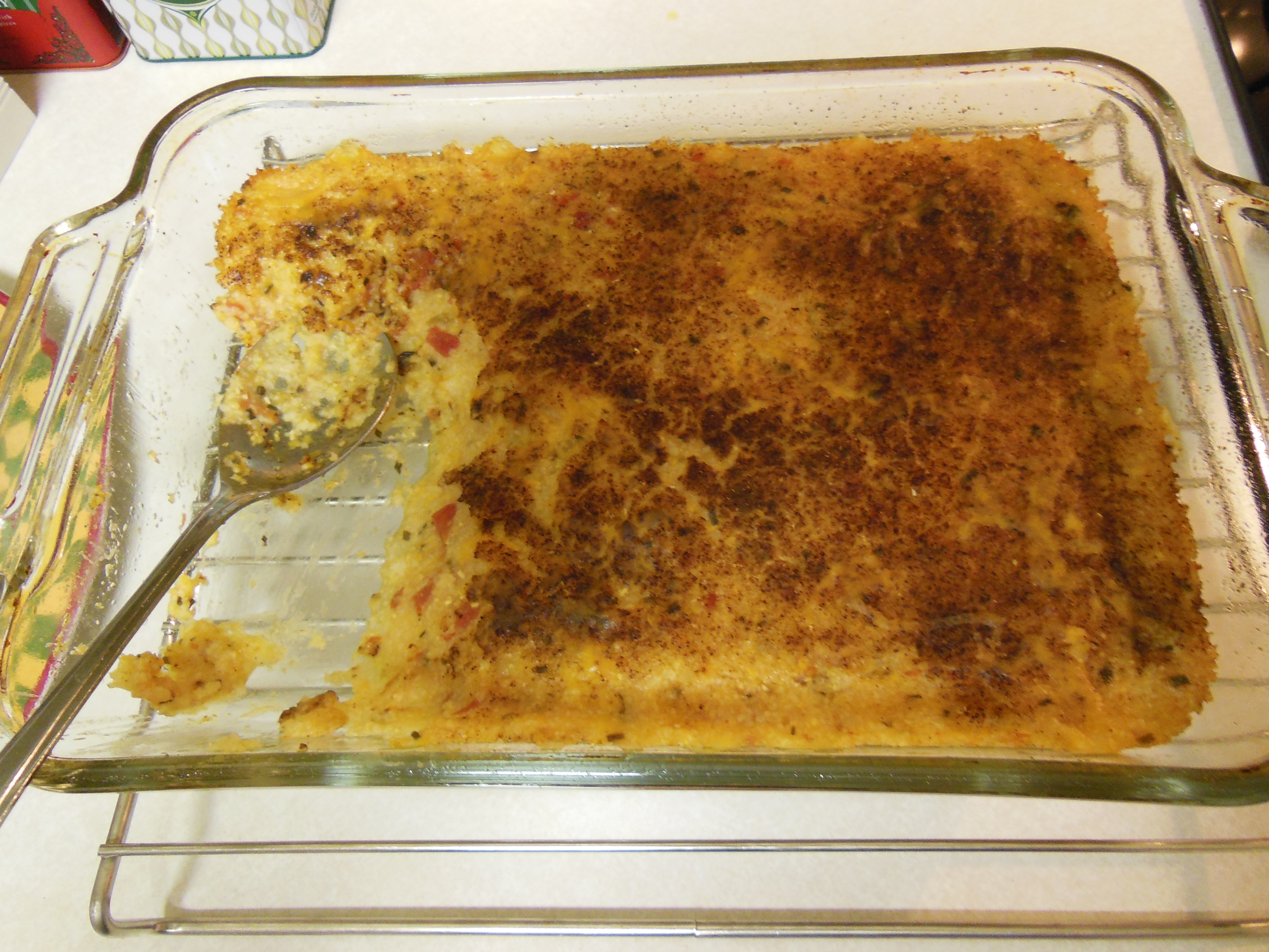 I used a 10 oz can of Rotel tomatoes with green chiles as a replacement for separate ingredients. It is easier to serve if allowed to cool slightly first.
