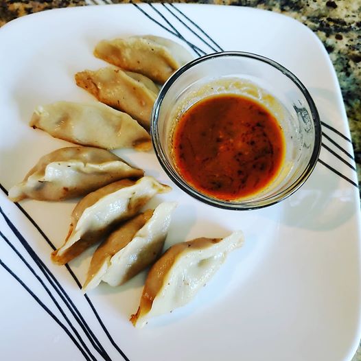 Pre-heat a large skilled over medium heat. Add vegetable oil to the pan; it should coat the bottom of the pan and be around 1/8" deep. Carefully place the dumplings in a single layer, flat side down. Carefully add in 1/2 cup water and cover immediately. Cook for 7-10 minutes or until the water has evaporated and the bottoms of the dumplings are golden brown. You will need to work in batches so repeat this process until all dumplings are cooked. While your last batch of dumplings cooks you can make your sauce.