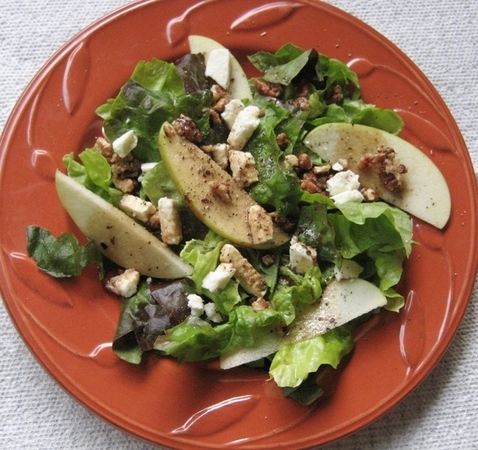 This is my favorite salad and it is always a hit when I take it to a gathering. You can use any combination of salad greens that you like; I use whatever I have on hand. I shouldn’t admit it, but I could drink this dressing.