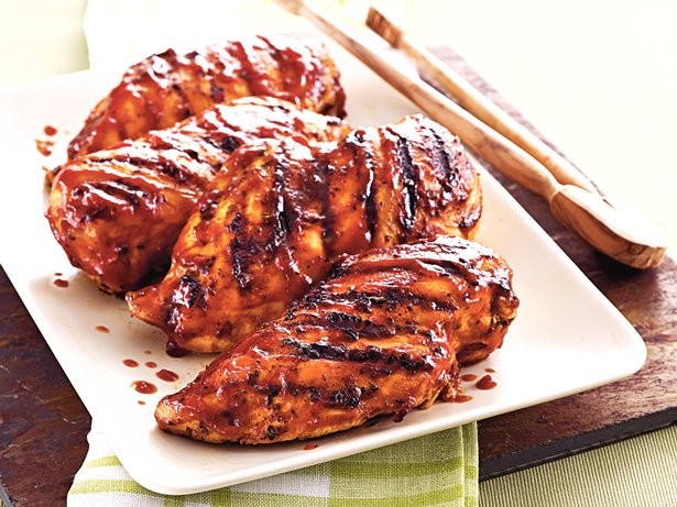 For zesty, make-your-own wrap sandwiches, slice the warm chicken into strips and serve with tortillas, shredded lettuce, sliced avocado and the sauce. Decrease the fat in this recipe by spraying the chicken breasts with olive oil-flavored cooking spray instead of brushing them with the 1 tablespoon olive oil.