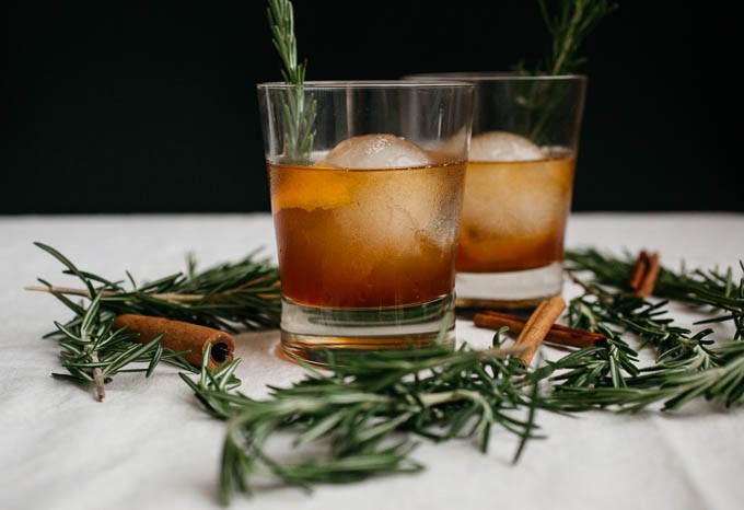 Rosemary infused simple syrup mixes in this old fashioned drink.