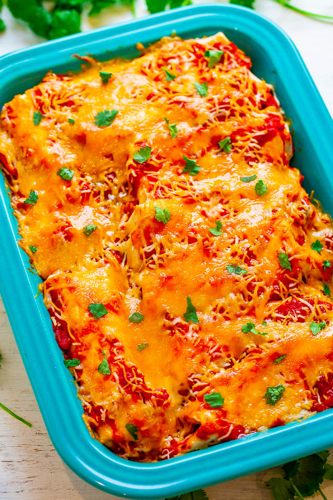 Evenly drizzle the remaining salsa over the top and evenly top with cheese. For a make ahead option, stop here, cover, and refrigerate until ready to bake.