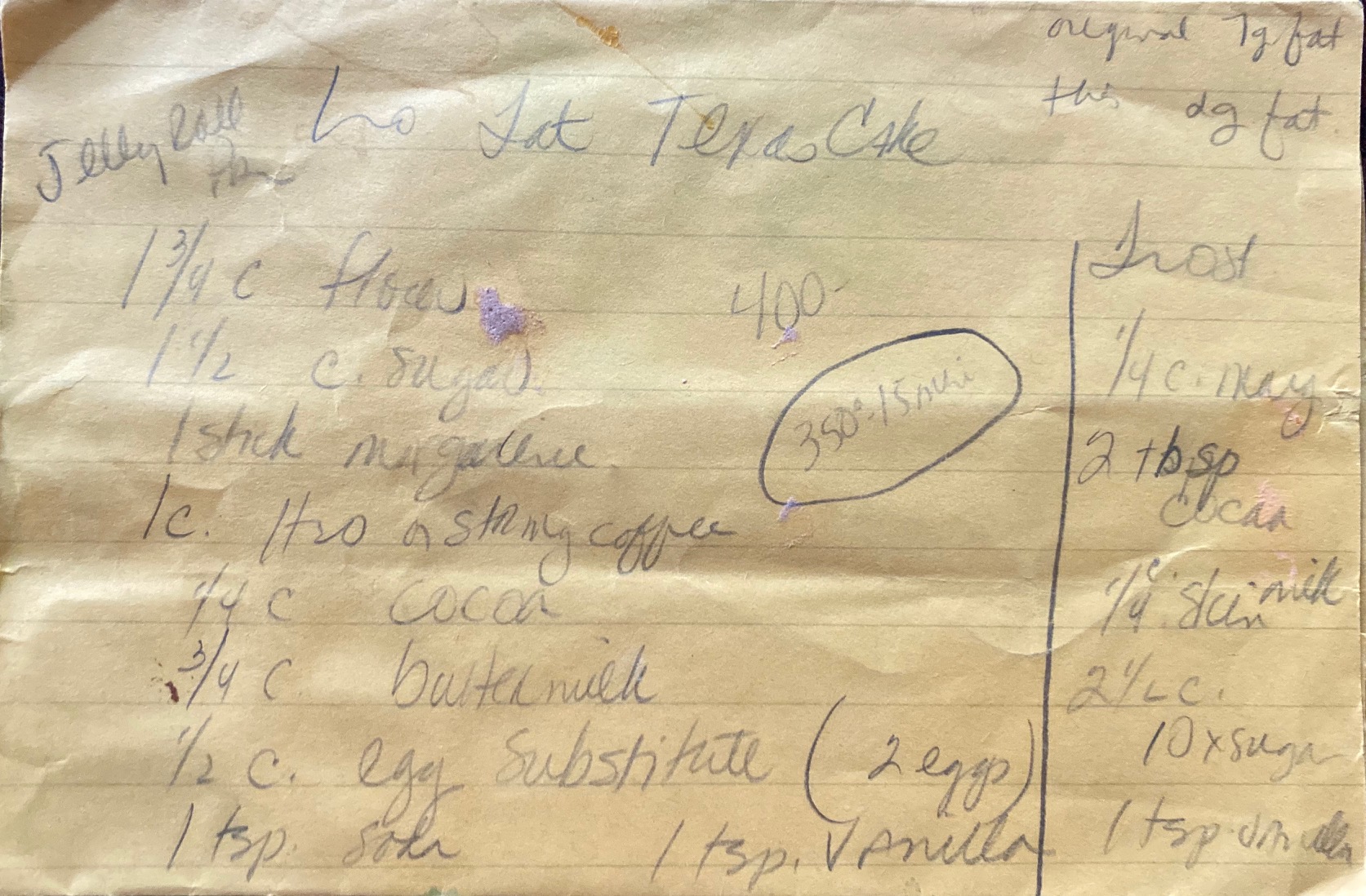Chocolate sheet cake with chocolate frosting, using reduced fat ingredients.