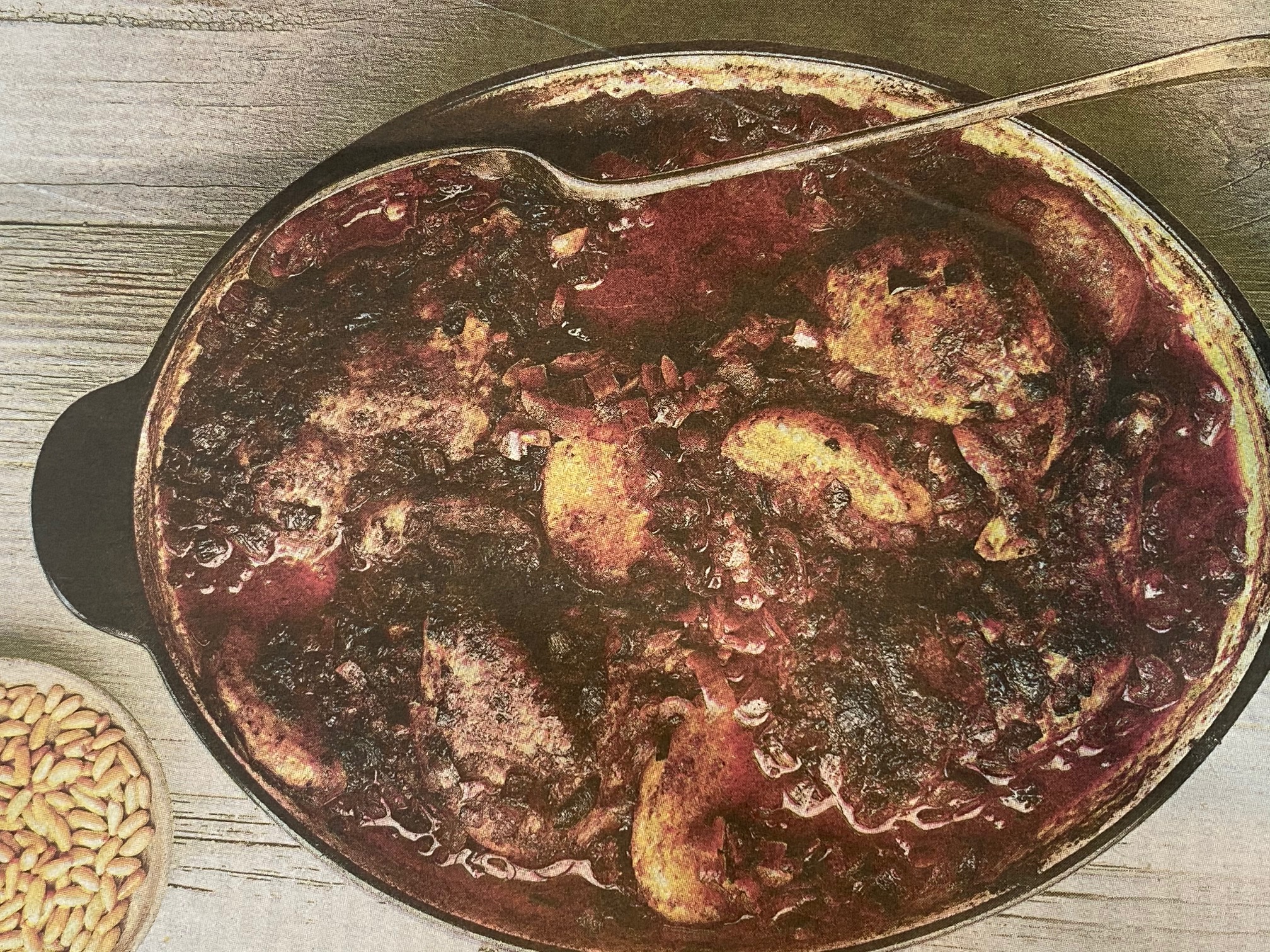 Add water to pan, cover with foil and place in oven. Cook until chicken, onions and potatoes are fully cooked, about 60 to 75 minutes, checking once or twice during cooking to make sure liquid has not entirely evaporated, adding a little more water if necessary. The sauce should have a gravy-like consistency.