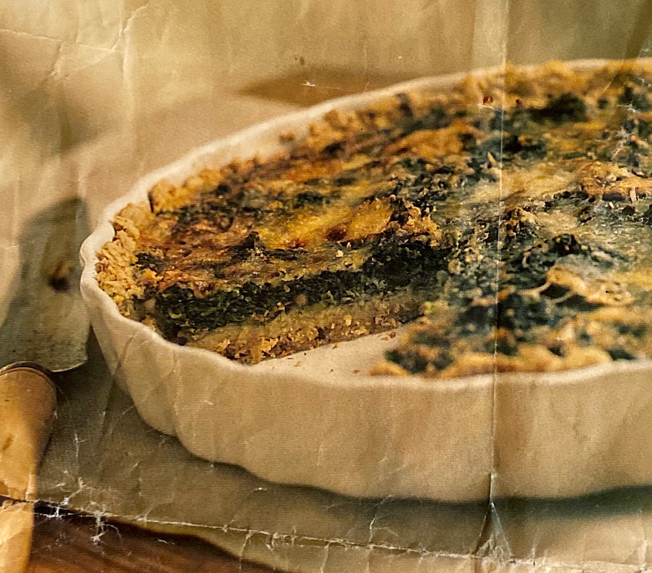 The oat crust provides a crunchy contrast to the creamy spinach filling in this quiche.