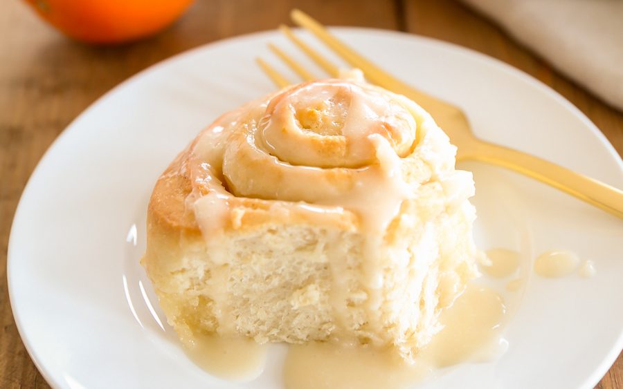 Meanwhile, in a bowl, stir together powdered sugar, orange juice and vanilla until smooth. Drizzle over rolls.
