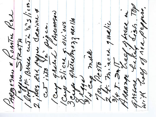 Combine eggs, milk, pesto, garlic and salt. Pour over strata.