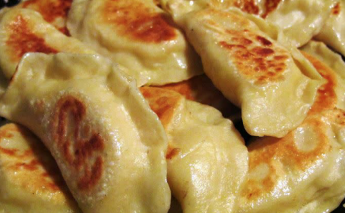 Drop 6 or 7 into boiling water. Boil 1-2 minutes until they float to the top. Drain slightly and coat with butter in a fry pan.