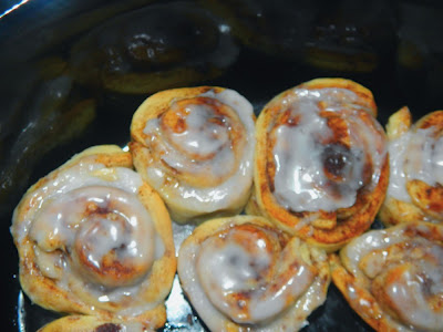 Mix up icing/glaze and pour over hot rolls to create an ooey, gooey, perfectly moist cinnamon bun. Top with pecan pieces if you're feeling wild.