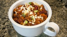 3. Remove the bay leaf. Serve in bowls, sprinkled with Jack cheese and green onions.