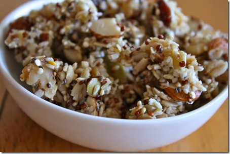 This granola is so incredibly addicting!!! You mayyy find yourself eating it like cookie dough even before you slide it into the oven... I love it with rice milk or nonfat Greek yogurt. The fact that a double batch is so quick and easy to whip up yet lasts several breakfasts is really worth it!