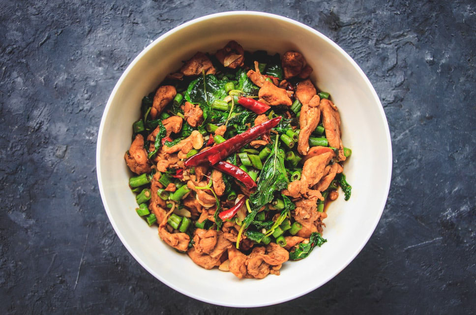 - 4 ounces - boneless, skinless chicken breast or thigh sliced into strips