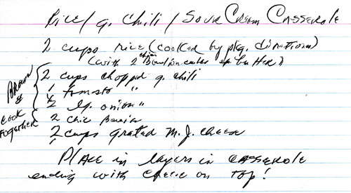 Cooked rice layered with green chilies, tomato and onion, topped with Monterey Jack cheese.