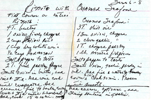 Saute onion in butter; add rice, and stir. Add wine and cook until evaporated. Add creamed fish to barely cover; cook and stir until absorbed.