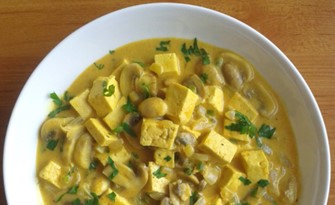 Roasted tofu in coconut milk.