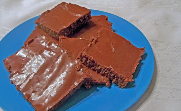 Pour into a greased 15x10x1-inch baking pan. Bake at 350 for 20-25 minutes or until a toothpick inserted near center comes out clean (top of brownies may still appear wet). Cool on a wire rack for 15-20 minutes.