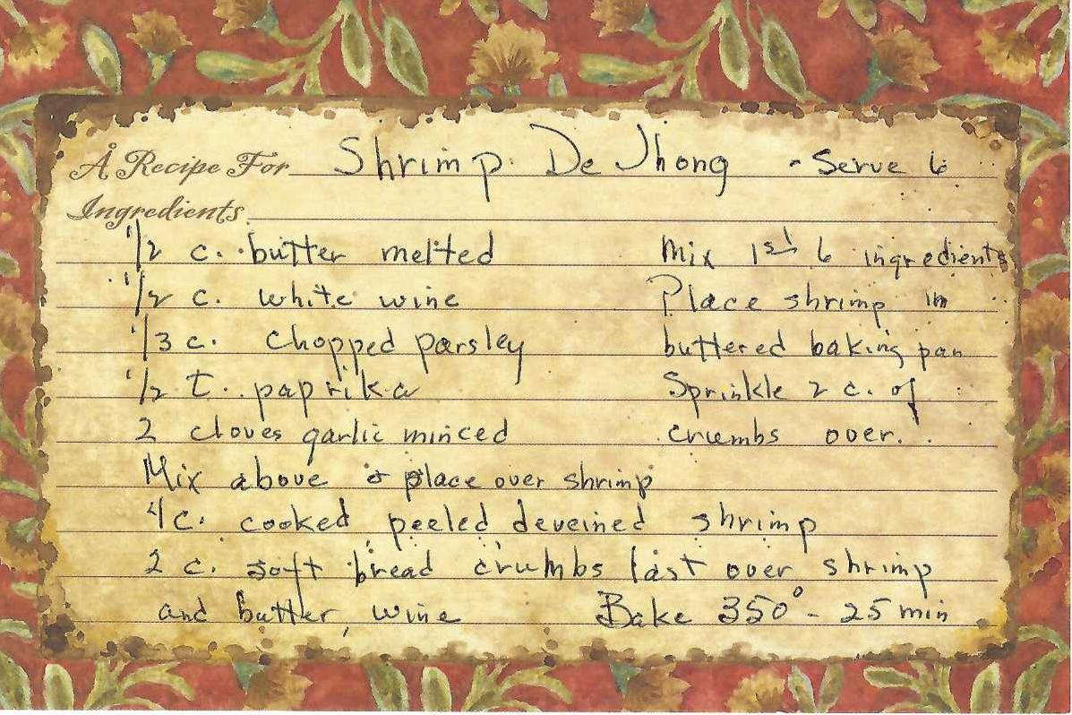 Place shrimp in buttered baking pan. Pour butter mix over the shrimp, then sprinkle bread crumbs over the shrimp.