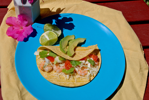 Corn tortillas wrap up sautéed shrimp with cabbage, tomatoes, and monterrey jack cheese with a spicy sour cream. Serve with your favorite taco toppings.