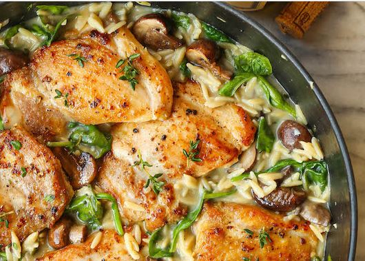 Skillet Chicken and Mushroom Orzo