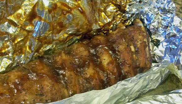Close foil around ribs and place ribs on grill; allow to heat for about 10 minutes.